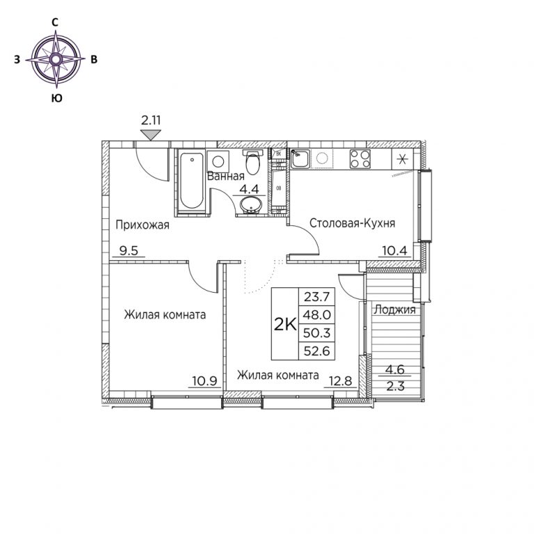 Стоимость: 9964509 Цена за квадрат: {price_kv2} Площадь: 52.6 Адрес: {adressr} Номер квартиры: {kv_num} Кол-во комнат: 2-x комнатная Этаж: 14 Высота потолка: {potolki} Номер подъезда: 2 Отделка: без отделки ЖК: {zkr} Дом: {housesr}