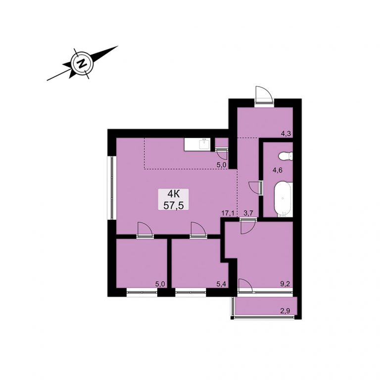 Стоимость: 9968400 Цена за квадрат: {price_kv2} Площадь: 57.45 Адрес: {adressr} Номер квартиры: {kv_num} Кол-во комнат: 4-x комнатная Этаж: 9 Высота потолка: {potolki} Номер подъезда: 1 Отделка: white box ЖК: {zkr} Дом: {housesr}