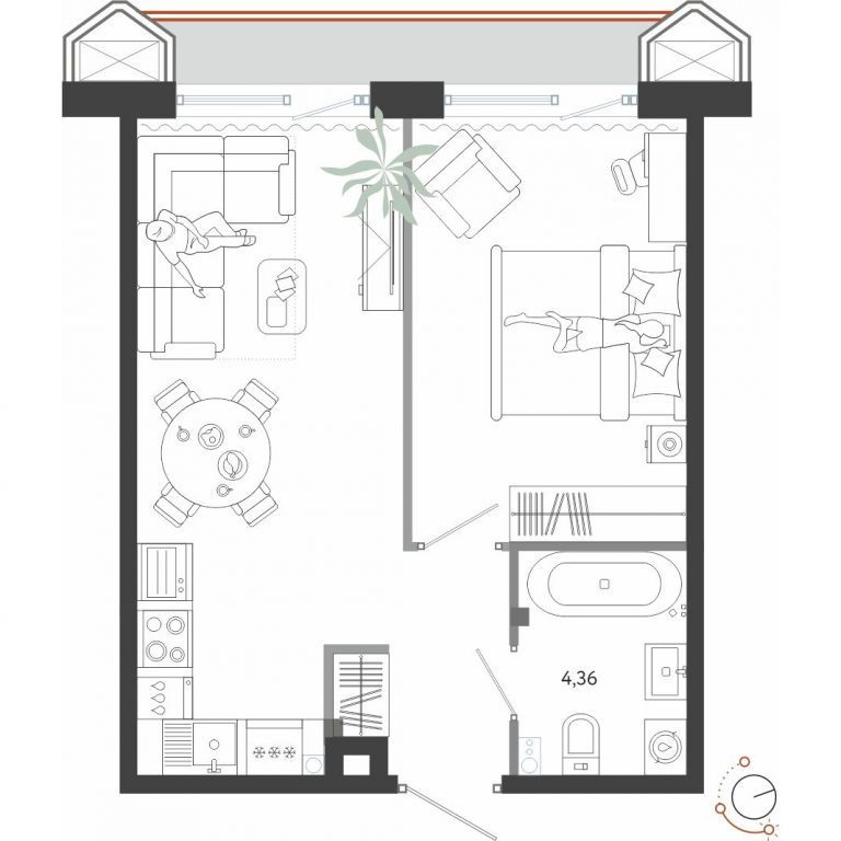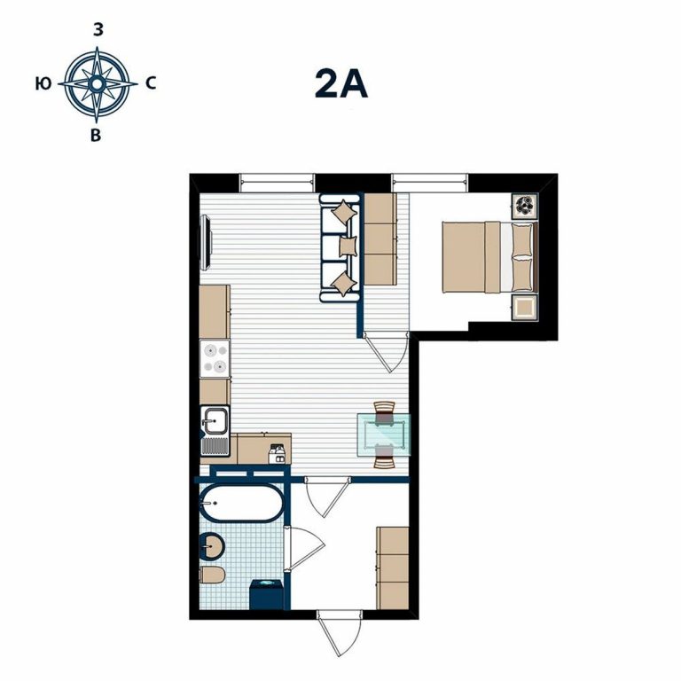 2-x комнатная, 43.29 кв.м