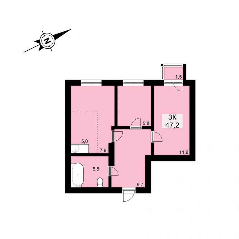 3-x комнатная, 46.69 кв.м