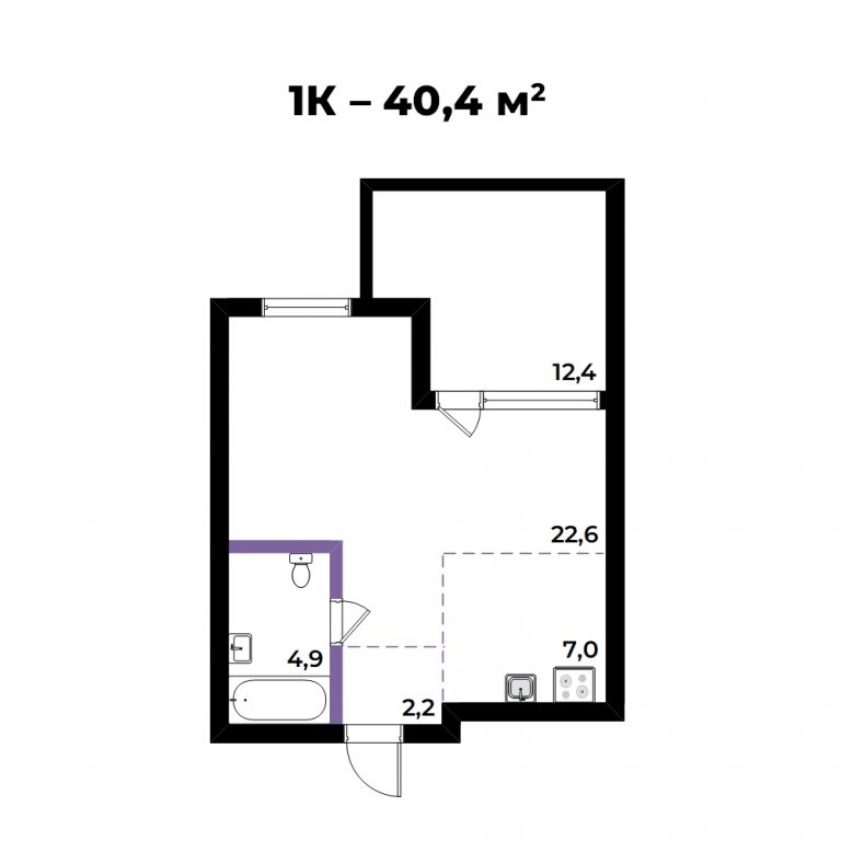 2-x комнатная 40.4 кв.м 8 074 000 1 1 без отделки