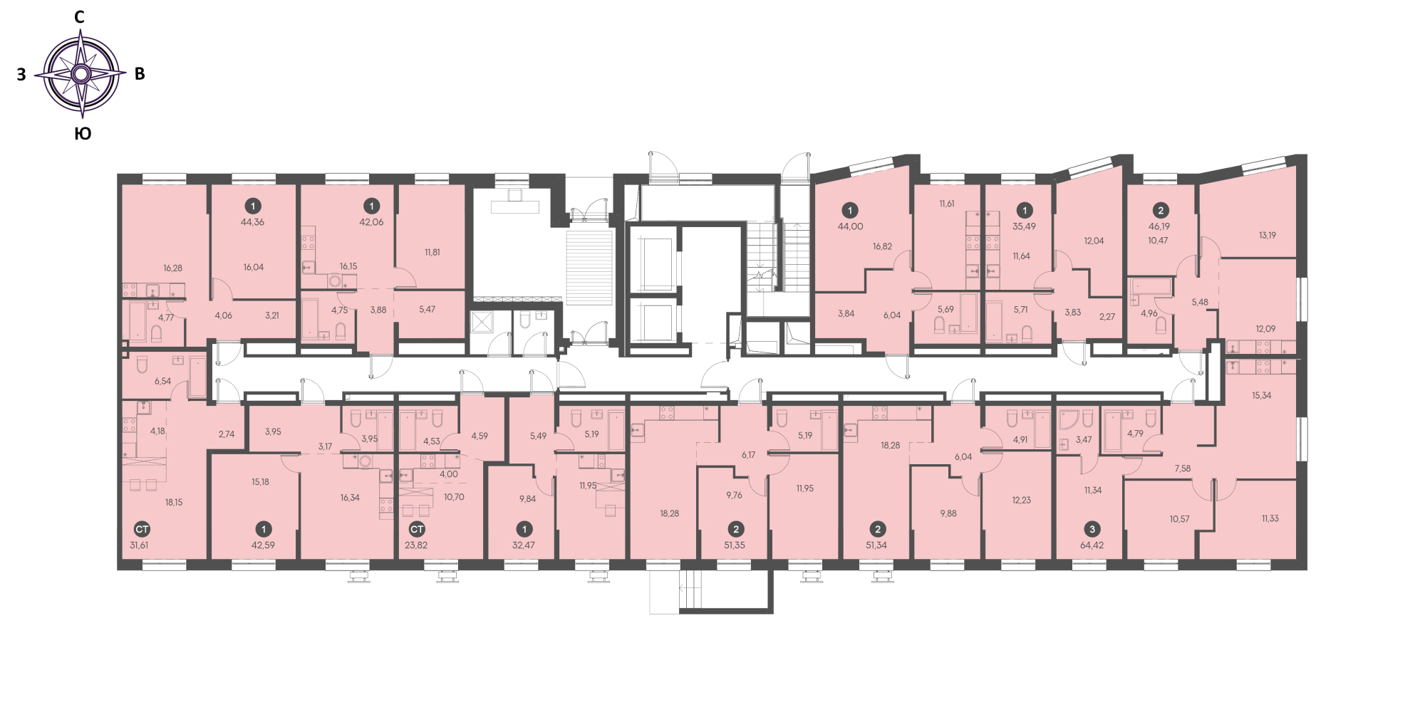 1 комнатная 40.8 кв.м 4 152 795 3 1 без отделки