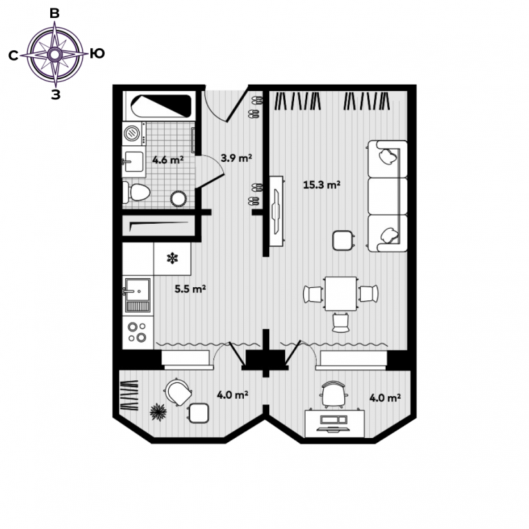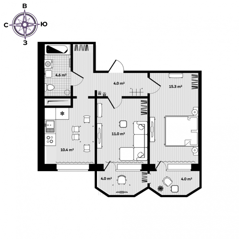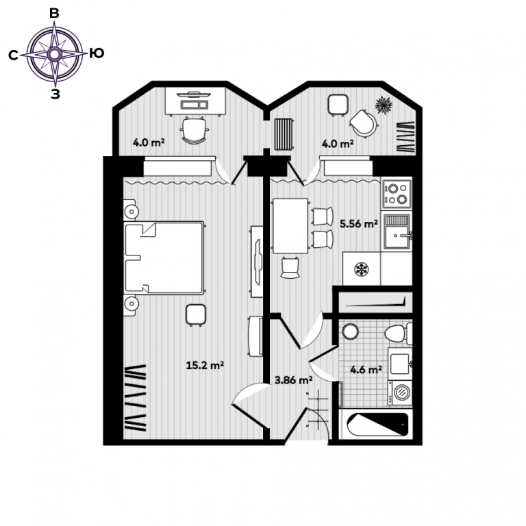 1 комнатная 40.8 кв.м 4 412 320 8 2 без отделки