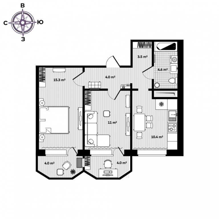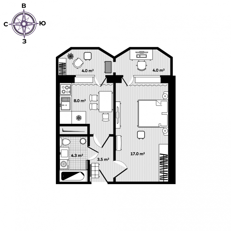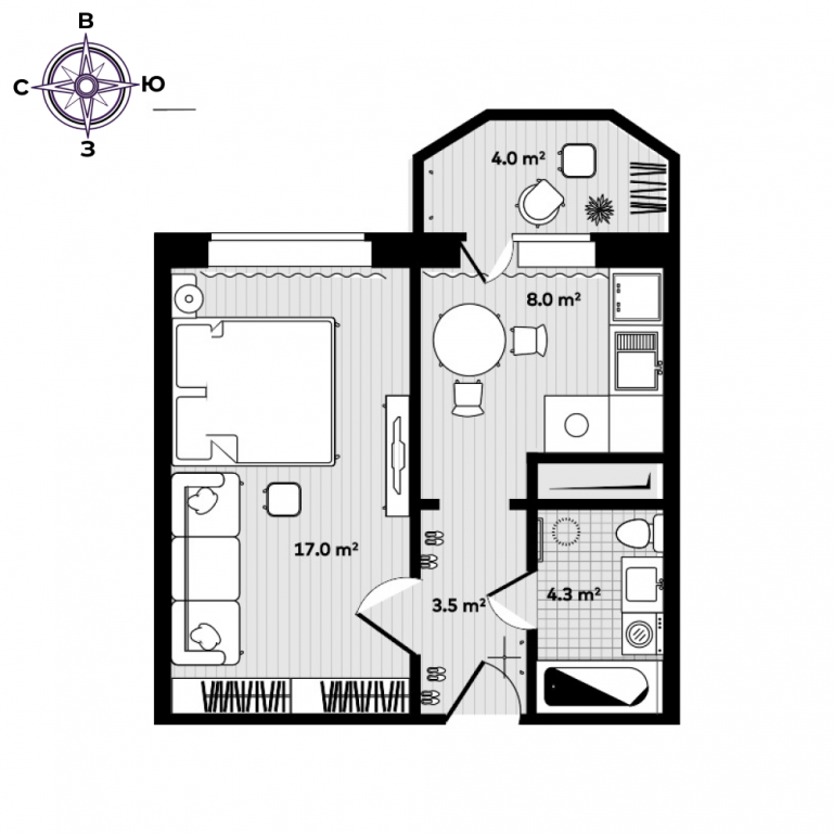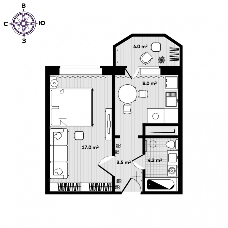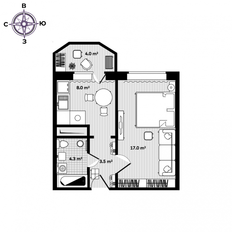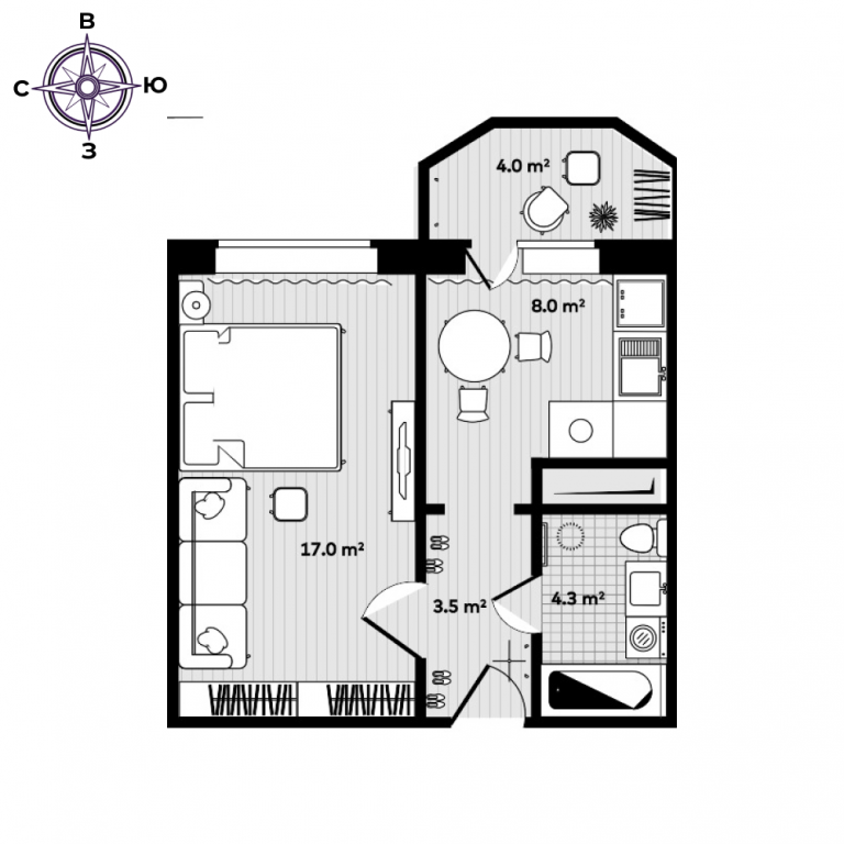 1 комнатная 36.8 кв.м 3 948 303 3 1 white box