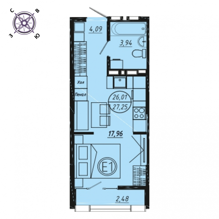 Студия, 26.1 кв.м